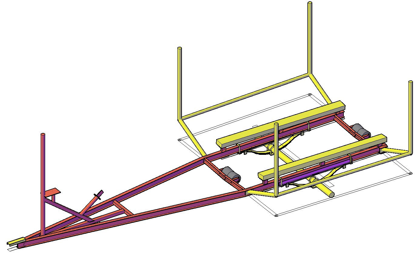 Construction detailing of the boat which shows the poles details, boat materials details, and other unit details.