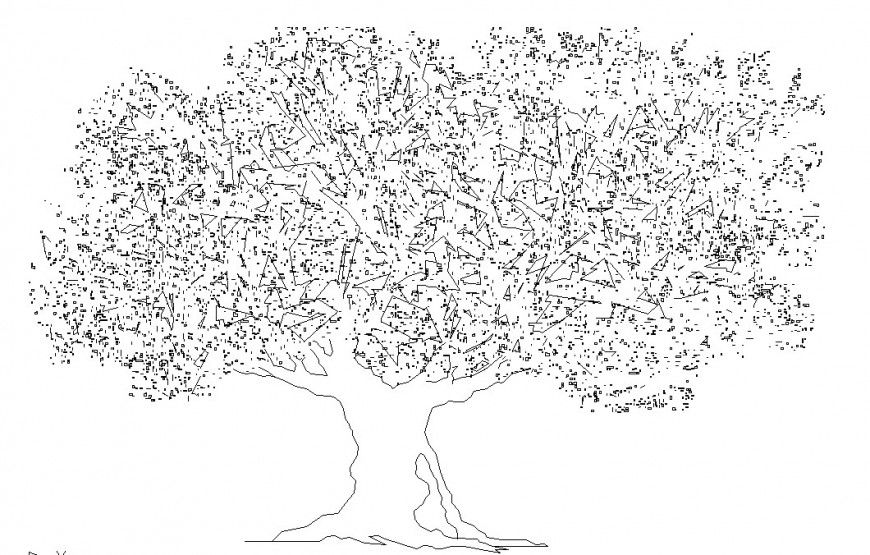 Big tree elevation plan autocad file, front elevation detail, grid lien detail, not to scale detail, leaf detail, back colour line detail, etc.