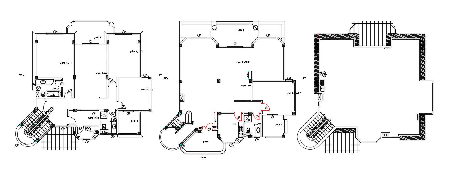 Floor plan design of residence single-story house which shows foundation plan, terrace plan of house, dimension hidden line details, and various other details of residence house.