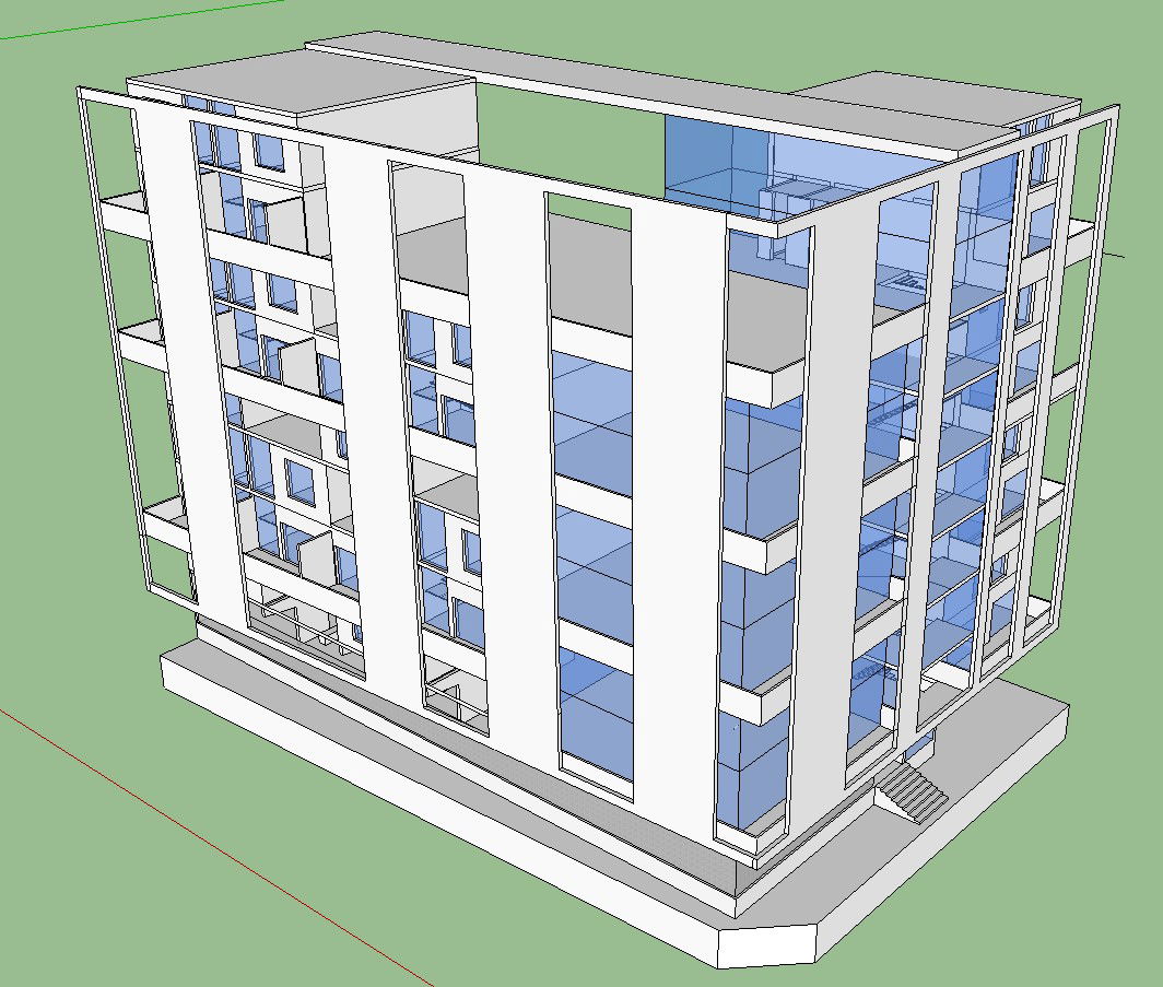 Apartment flat 3d model view download sketch-up file which shows the isometric view design of the apartment.