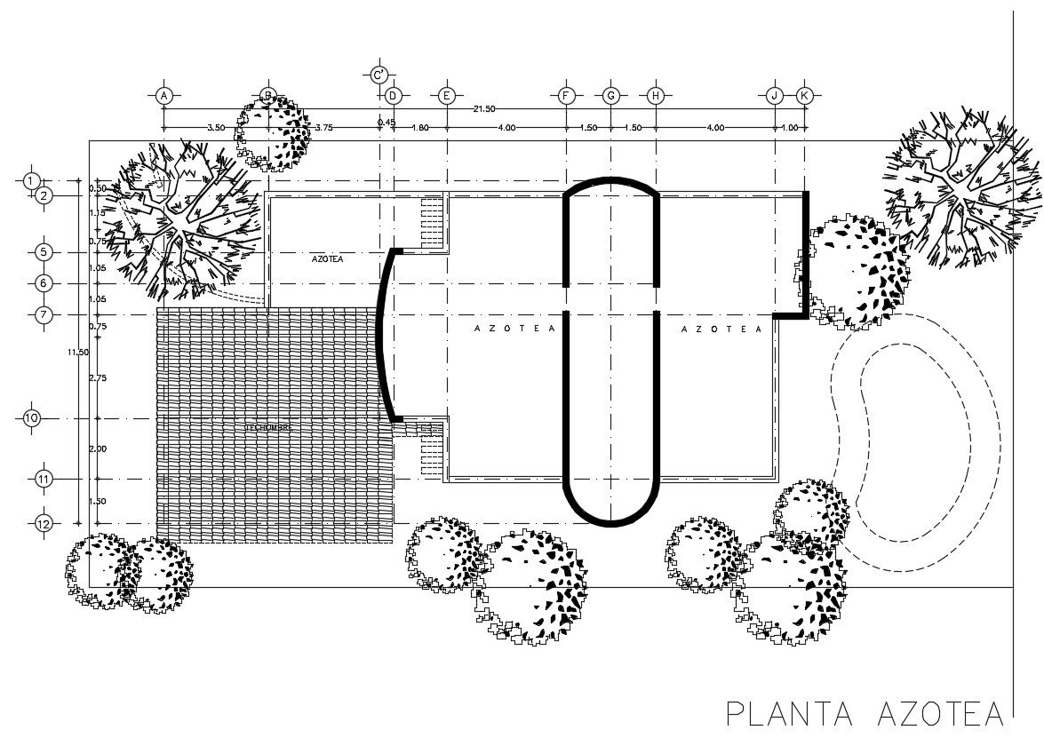 Download house terrace plan design along with swimming pool details, boundary wall details, roof design details, and various other details.