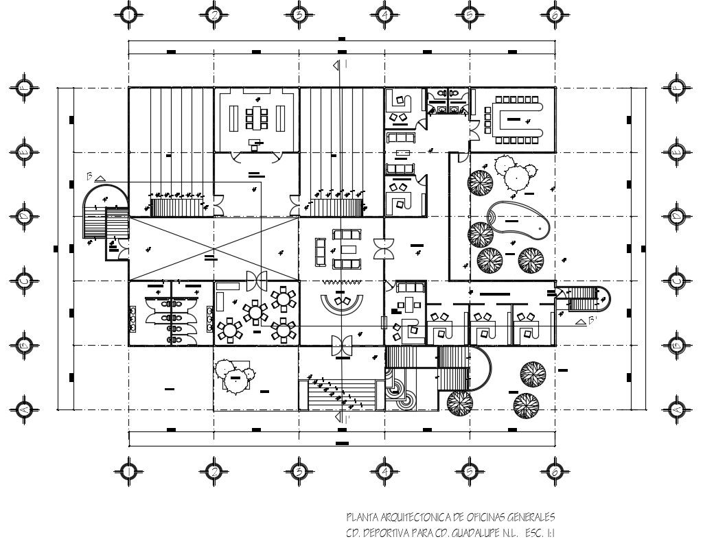 Download office layout design which shows the office building plan details along with furniture layout details in building along with dimension hidden line details.
