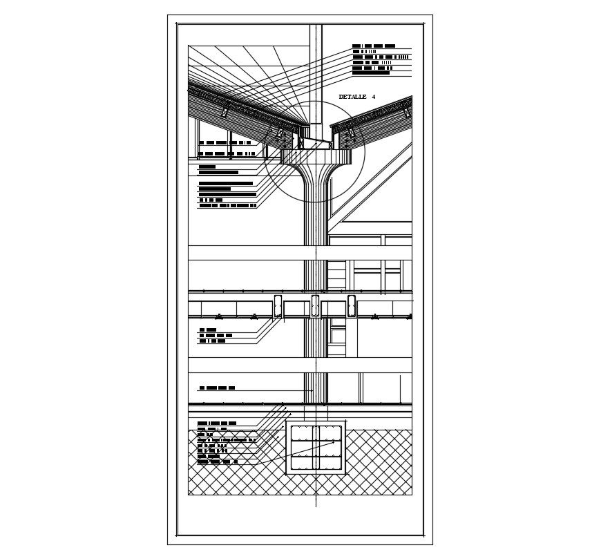 Download roof column structural details along with footing details of the column, roof principal rafter details, angle sections details, and various other structural blocks details.