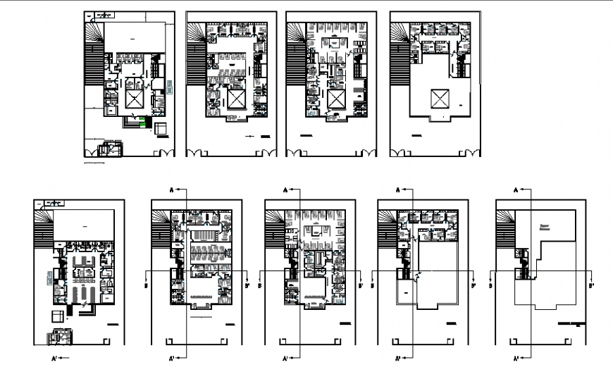 Collage lab planning layout file, top elevation detail, cut out detail, stair detail, furniture detail in table, chair, door and window detail, section line detail, thickness detail, cut out detail, naming detail, column detail, etc.