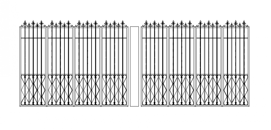 Wall gate plan detail dwg file, flower detail, reinforcement detail, bolt nut detail, front elevation detail, not to scale detail, thickness detail, stirrups detail, etc.
