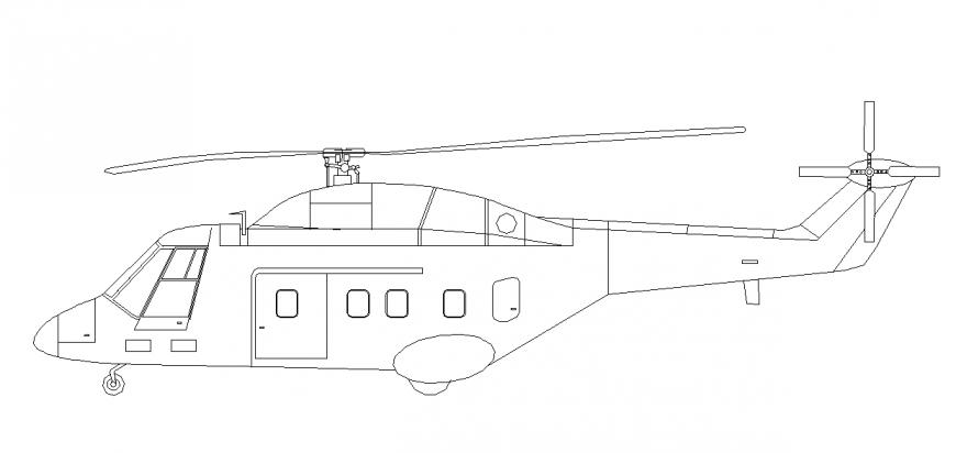 Side View Helicopter Design all parts Like Door & Window, Capton Cabin , Seating area Etc mantion the drawing.