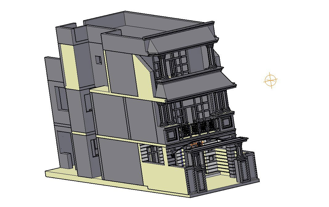 3d model of bungalows design in DWG file residence bungalows design that shows number of floors level and out looks rider image download DWG file of 3d model building design.