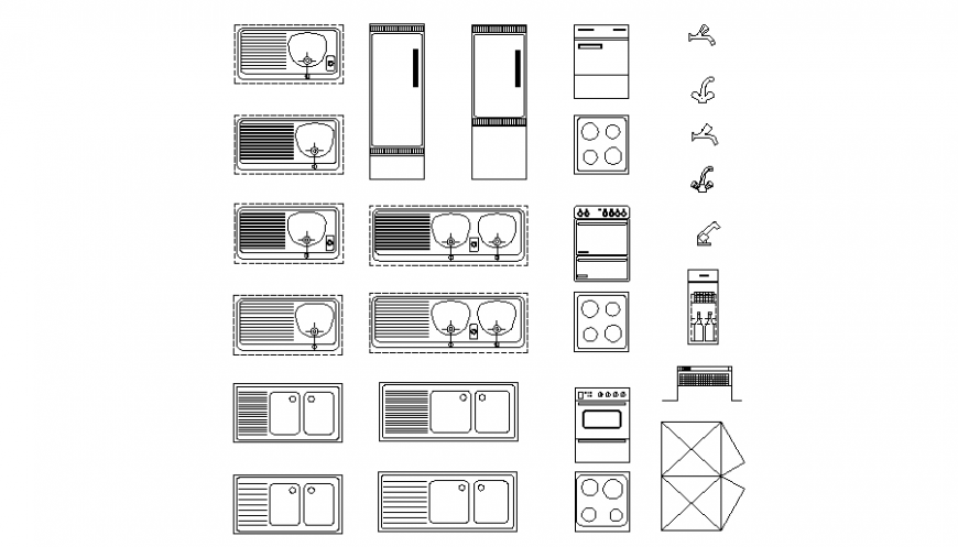 Kitchen equipment plan autocad file, trap detail, stove detail, cut out detail, hidden line detail, switch board detail, oven detail, handle detail, grid line detail, not to scale detail, main hole detail, double sink detail, arc shape corner detail, etc.
