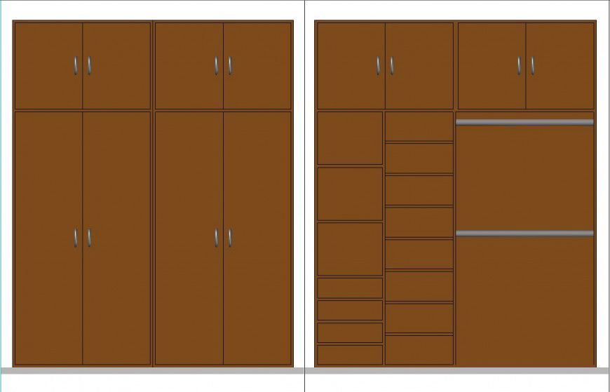 Wardrobe Front Elevation DWG Drawings with Dimensions and Design