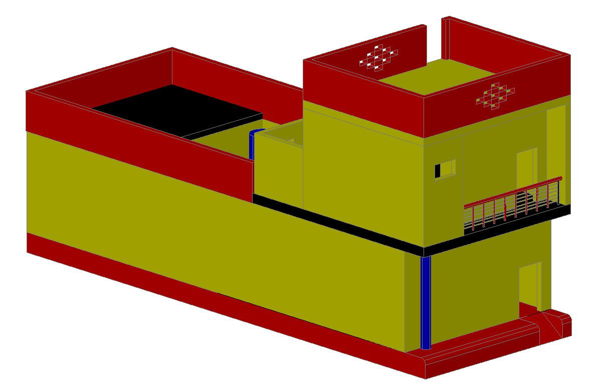 3D model House elevation design of AutoCAD file This shows style elevation with box window design. 3d house model of 2 floor Design in AutoCAD File of free download file