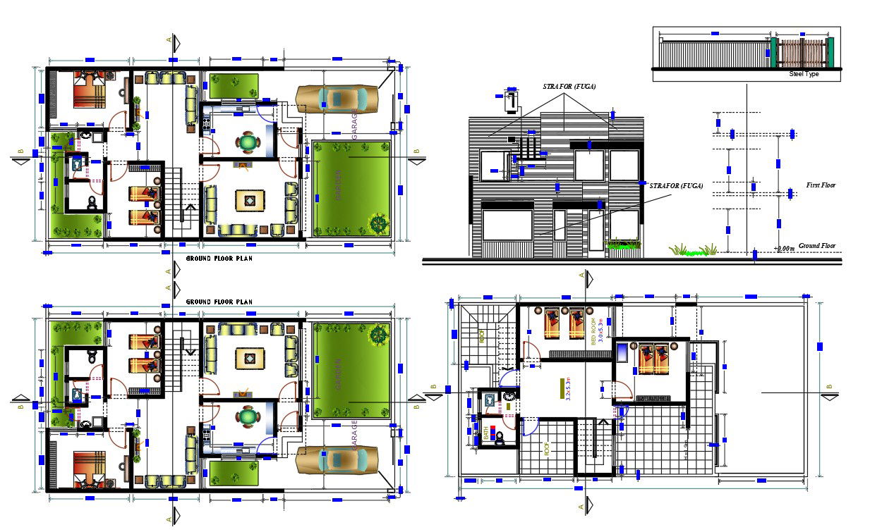 House plan design draw in autocad format, A hose details layout plan, elevation design, furniture details, parking area, garde House plan design dwg file, House plan design,House plan details