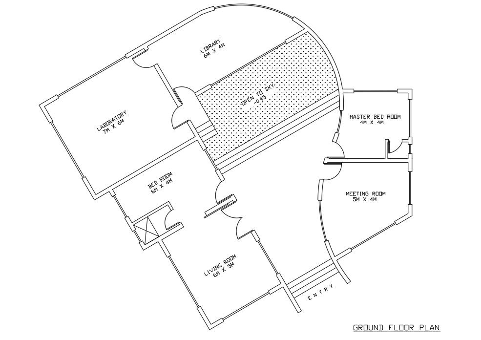 House plan design of DWG file.that shows include bedroom, living room, library room, master bed room, ground floor plan, House Design DWG File, House plan Design design in Download file