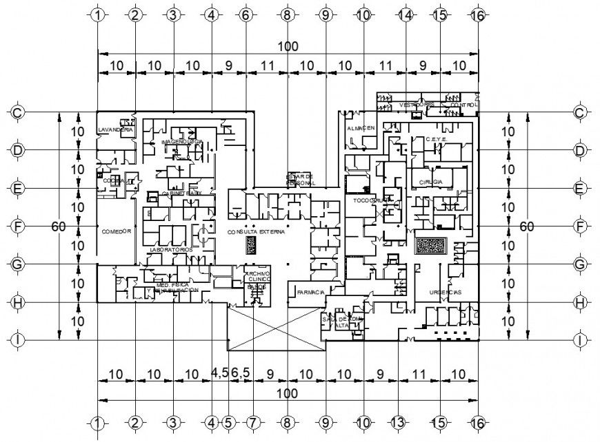 Hospital plan drawing in dwg file. Detail drawing of hospital floor plan , different zoning design details, section line drawing, dimensions details.