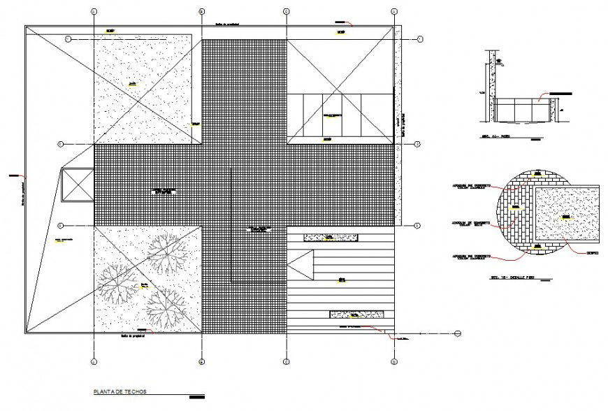Polyclinic roof detail dwg AutoCAD file. This file includes the detail roof detail, garden detail, concrete detail, wall detail, etc.