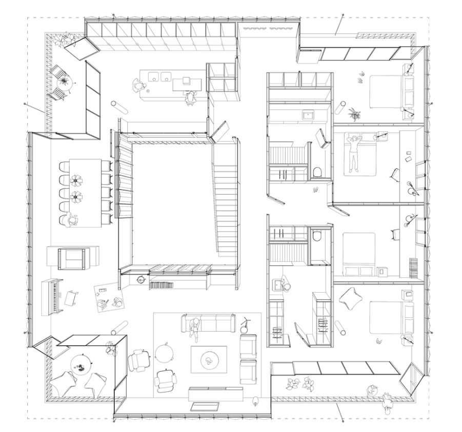 This House Layout DWG file includes detailed drawings of bedroom, living room, kitchen, and bathroom layouts. The AutoCAD format shows door and window placements along with furniture zones, ideal for architects, designers, or homeowners planning house layout design. Each room is dimensioned clearly to ensure practical use of space and smooth flow between areas. The DWG design offers precision and clarity, making visualization and construction easier.