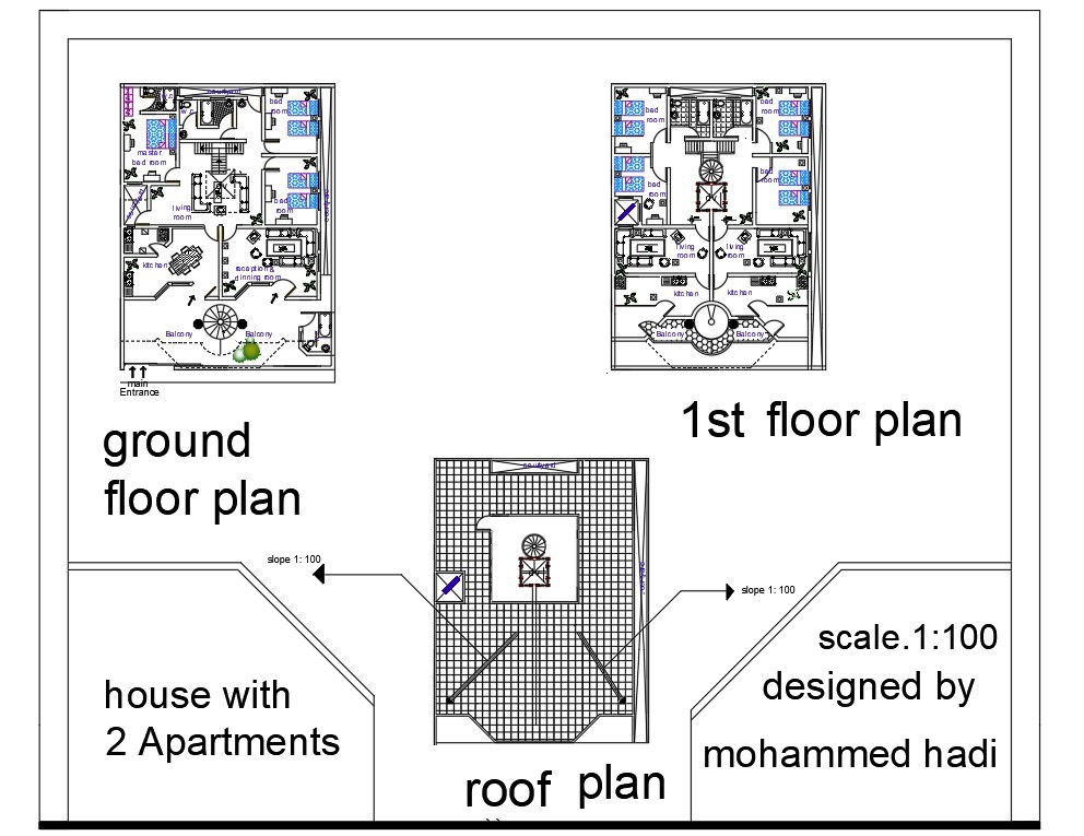 furniture layout plan design of DWG file. Also architecture include furniture Layout plan,roof plan, master bedroom,courtyard living room,kitchen,reception and dinning room open terrace of drawing room House plan Design of Download file.