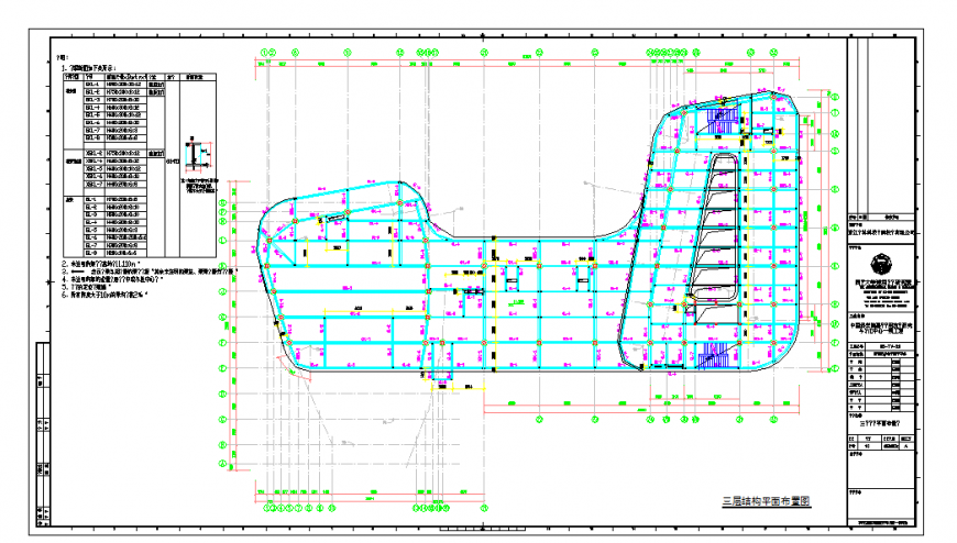 Three-layer structure floor Construction plan, Unspecified beam top elevations are 11.110m., Indicates that the steel beam is hinged to the connected beam. The remaining unspecified beam-column and beam-to-beam connections are just connected.