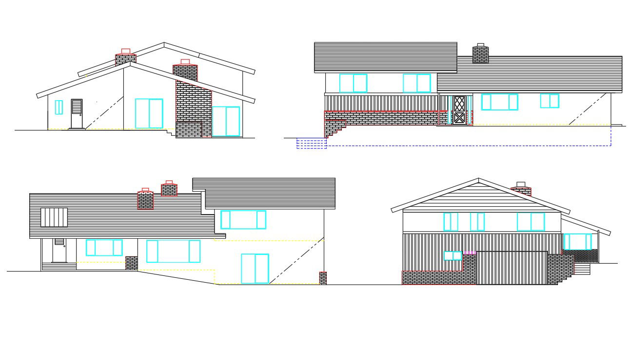 span roof house of four Elevation with design for DWG File this shows window and door ,roof, water tank, with elevation in download for DWG file