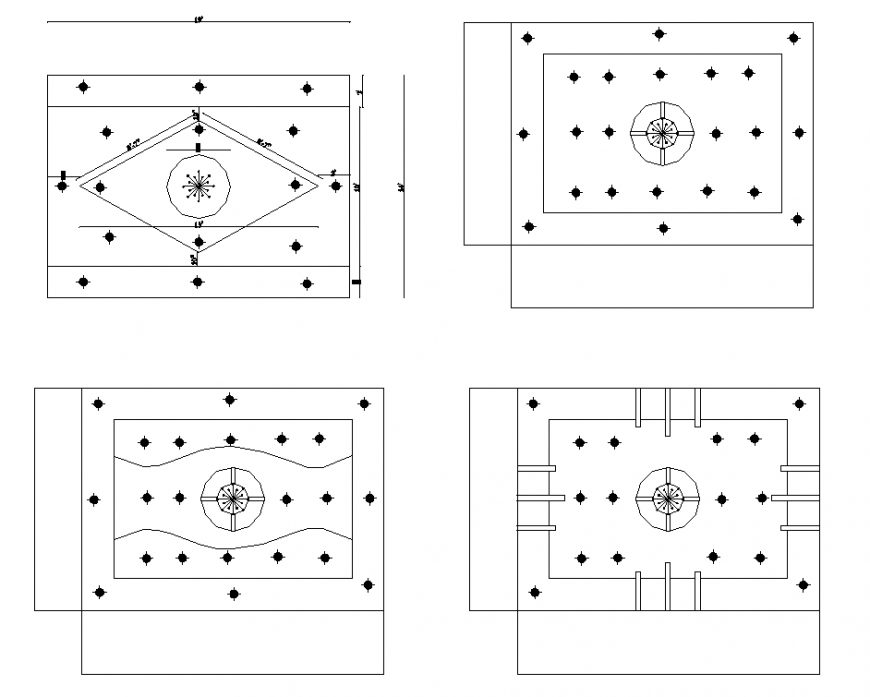 Lighting point ceiling detail dwg file, grid line detail, not to scale detail, front elevation detail, not to scale detail, cross line detail, waves detail, rectangle shape detail, etc.
