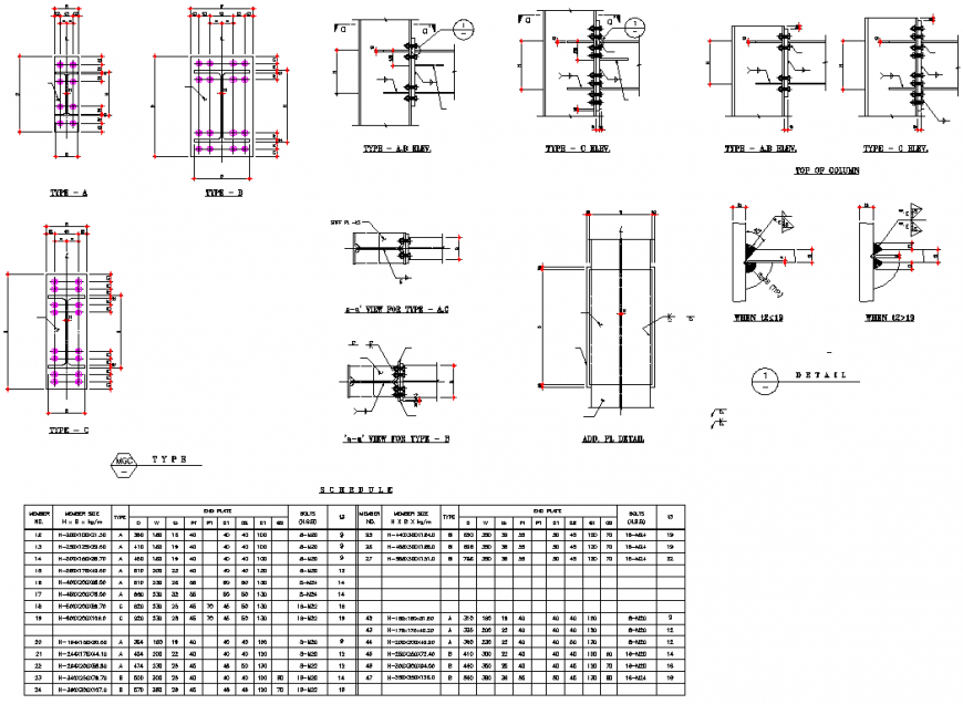 Stirrups section layout file, dimension detail, naming detail, front elevation detail, cross lines detail, stirrups detail, table specification detail, thickness detail, cut out detail, line plan detail, hatching detail, etc.