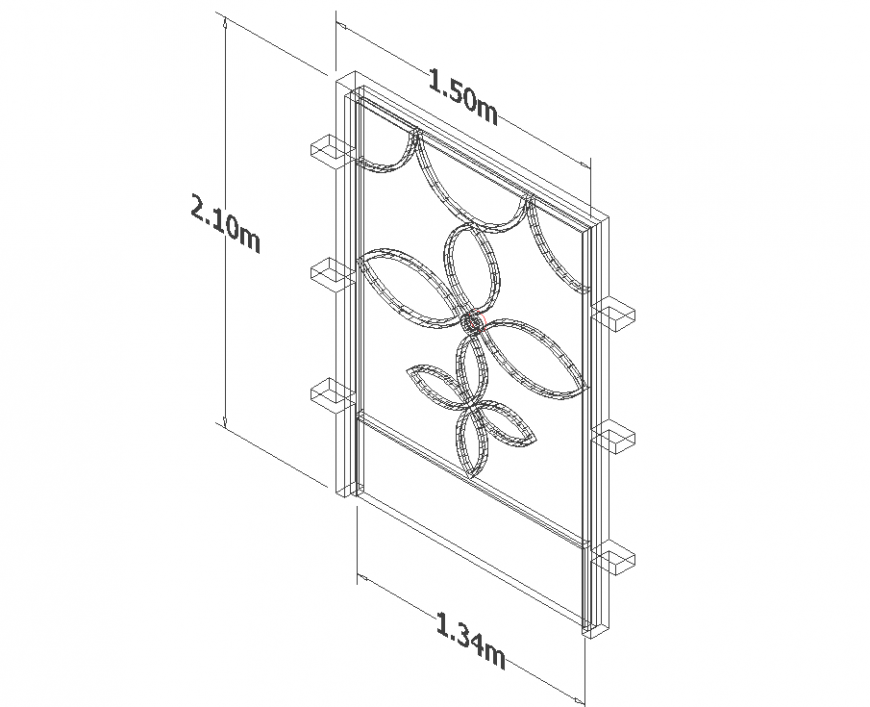 The partition plan detail dwg file. The isometric plan with detailing of floral deesign, dimensions, etc., The plan with detailing of border framing,cut work in the middle, etc.,
