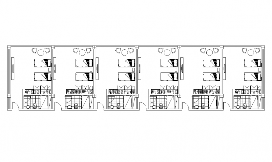 Plan of hotel area dwg file in plan with area distribution detail,wall detail,office detail,different room detail with bed area,door detail,washing area detail,stair detail in design of hotel.