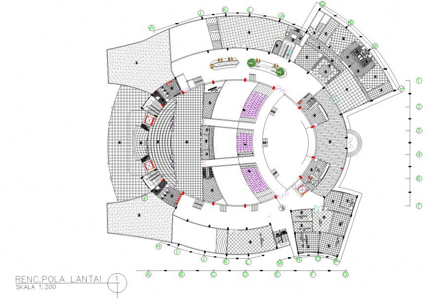 Layout commercial building plot autocad file, centre line detail, dimension detail, naming detail, flooring tiles detail, scale 1:200 detail, concrete mortar detail, landscaping detail in tree and plant detail, hidden line detail, stair detail, furniture detail in door and window detail, toilet detail in water closed and sink detail, numbering detail, etc.