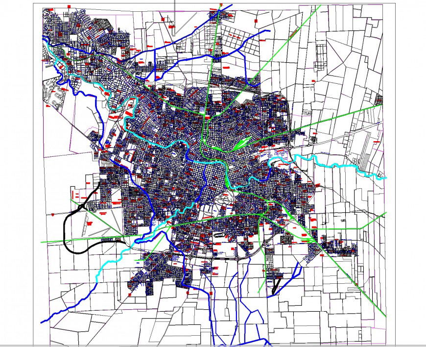 A Country map plan dwg file, colouring lines detail, hatching detail, contour detail, leveling detail, naming detail, landscaping detail in grass detail, etc.