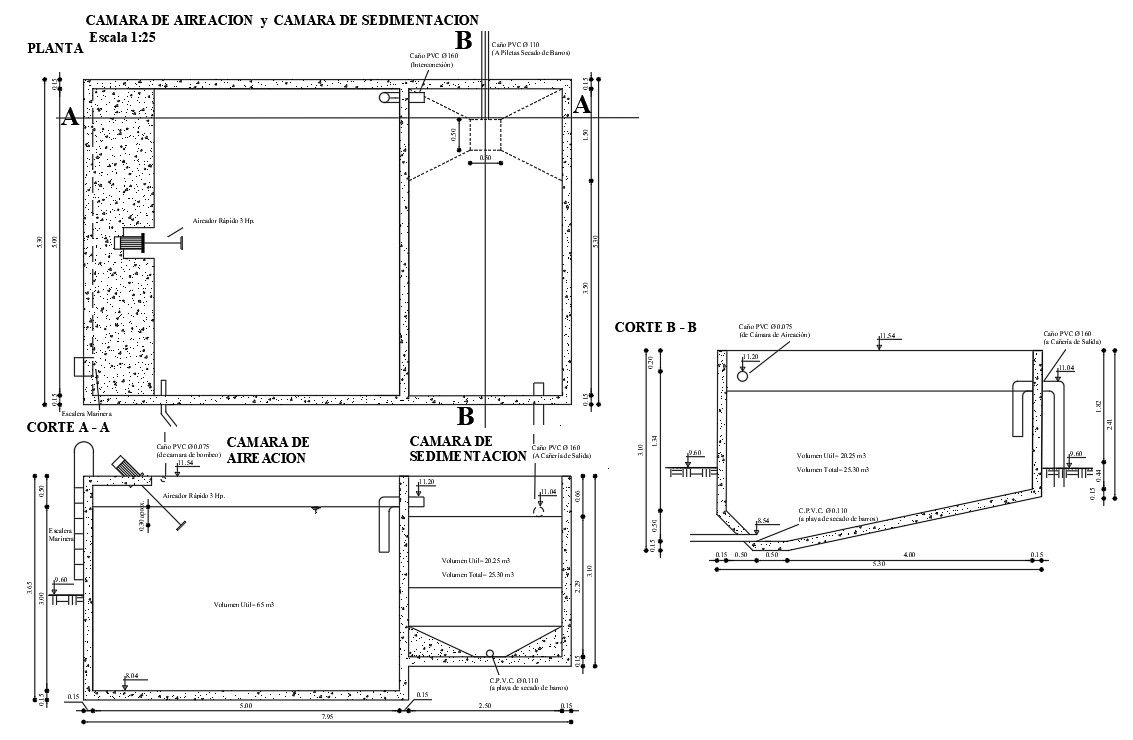 Drainage Tank Design in Drying mud beach System, Aeration Chamber, Settling chamber Detail Include this Autocad file.