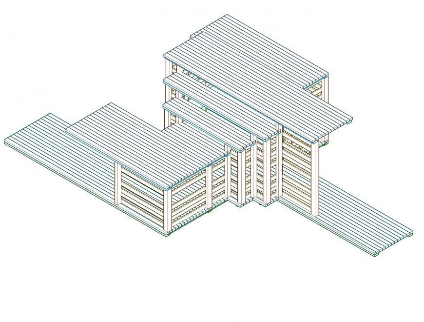 Isometric commercial building plan autocad file, hatching detail, column section detail, flooring level detail, step wise slab detail, etc.