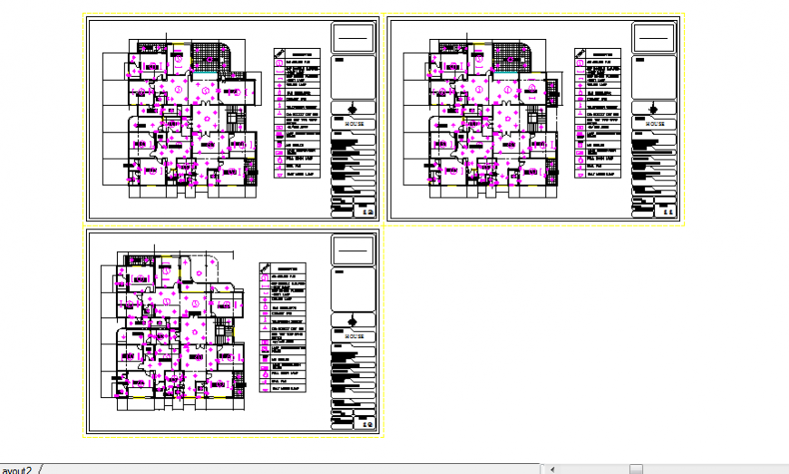 Here the Electrical Layout of House design drawing with ground floor,first floor, second floor with all detailing and symbol design drawing and technical specification design drawing in this auto cad file.