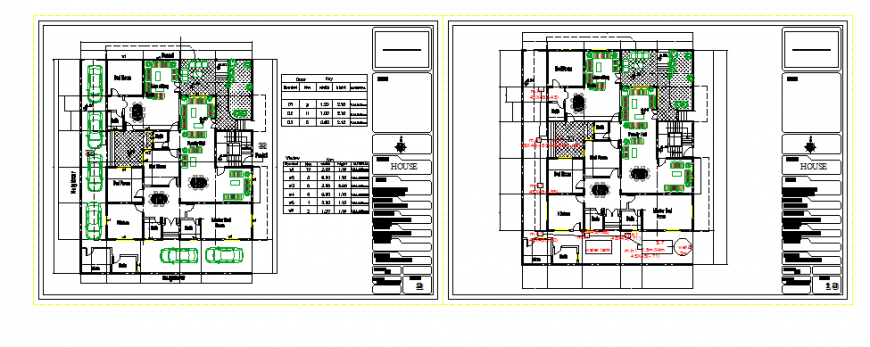 Here the Presentation Layout of House design drawing with ground floor and first floor design drawing with door window schedual design drawing in this auto cad file.