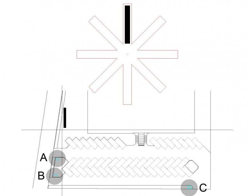 Ramp planning detail dwg file, section lien detail, north direction detail, naming detail, stair detail, etc.