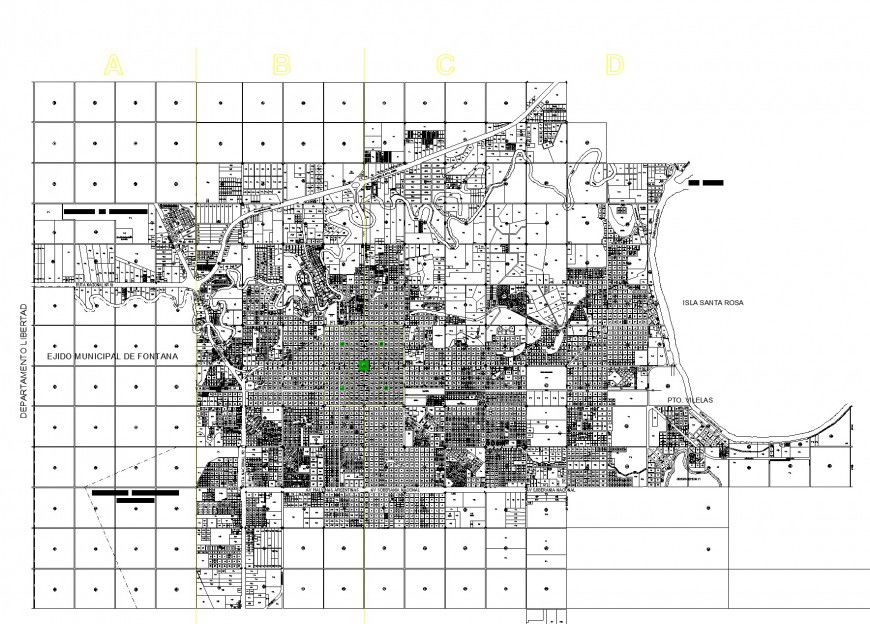Municipal map planning layout file, centre line plan detail, hidden lien detail, stair detail, dimension detail, naming detail, landscaping detail in tree and plant detail, river detail, contour line detail, block numbering detail, etc.