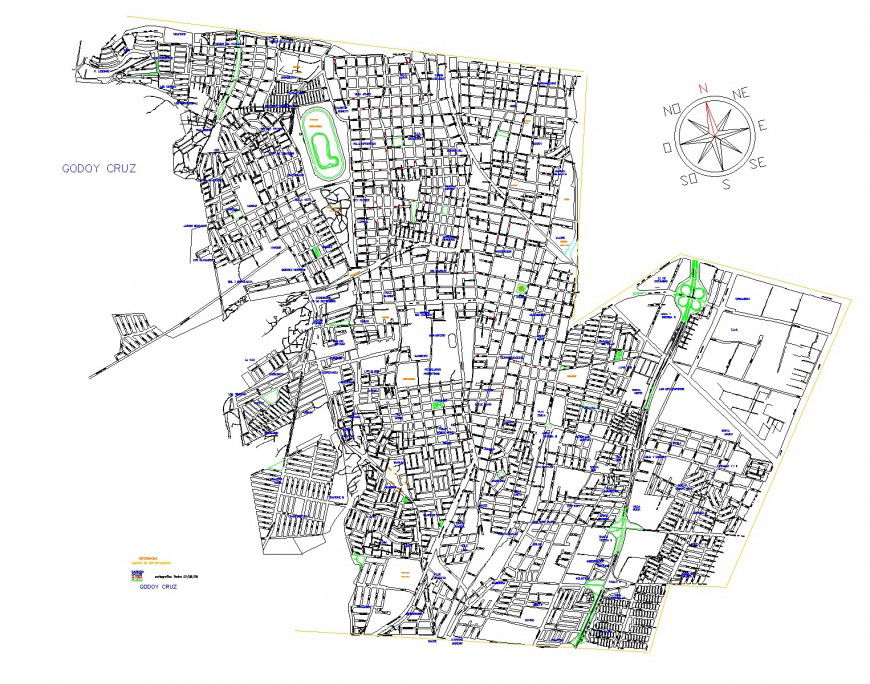 Lining map plan layout file, landscaping detail in tree and plant detail, north direction detail, naming detail, leveling detail, contour line detail, legend detail, railway track detail, etc.