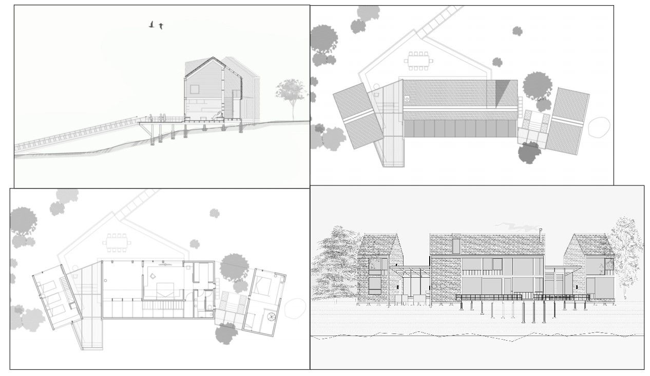 Modern Hill Station House DWG with Wood, Stone and Glass Layout