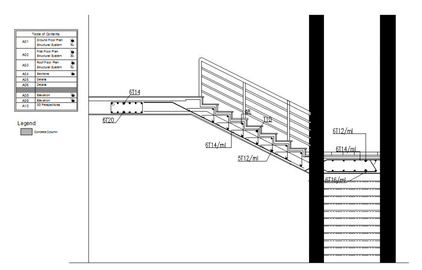 Side view staircase detail dwg file, here there is side view stair case detailing, file top view floor layout plan and construction file detailing dwg file