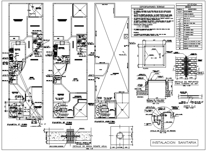 Installations sanitaires dwg file. with construction, section details, beam and column detail, doors and window detail cut out detail, naming detail etc.