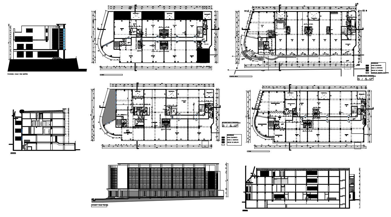 Building Section and Layout plan With Auto Cad File.A building details in include footprint ratio rise, references, existing walls, walls to build , Partition Turlock, layout, elevation plan and this file draw in autocad software