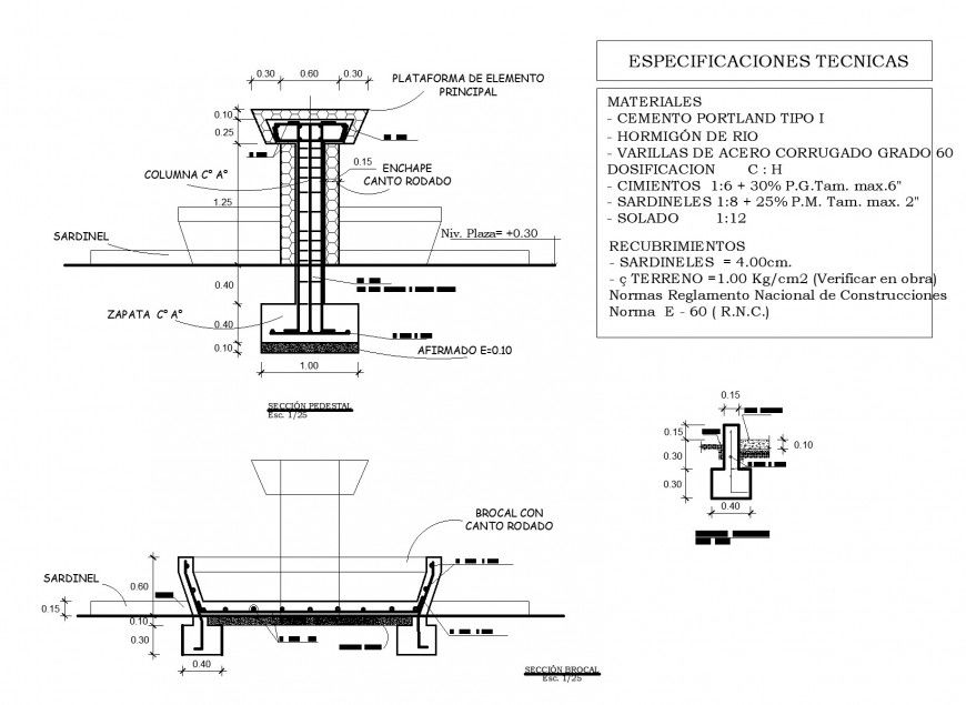 Detail of section fountain layout file, specification detail, dimension detail, naming detail, section A-A‘ detail, section B-B’ detail,, reinforcement detail, bolt nut detail, hatching detail, concrete mortar detail, hidden lien detail, foundation detail, etc.