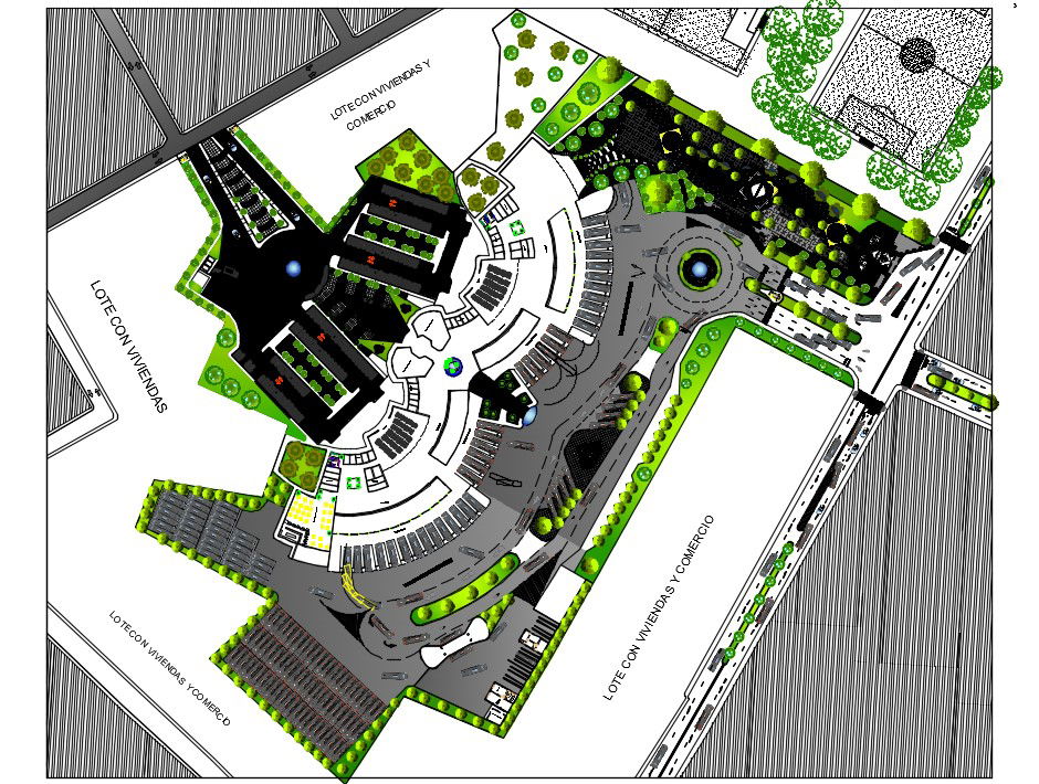 Bus terminal project details including in As of maniobrpation, room expociones, shops, Boarding , parking area, garden and other details are draw in autocad file.