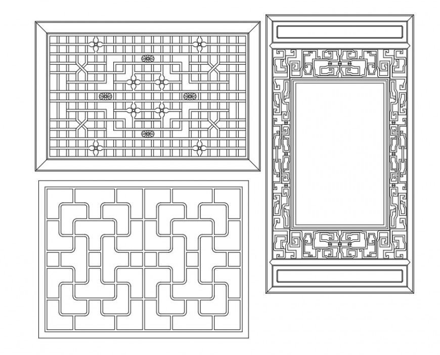 Detail ancient window autocad file, flower design detail, brick wall detail, grid line detail, black space board detail, etc.