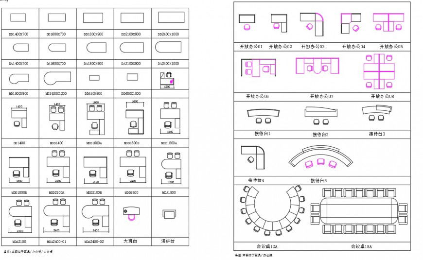 Architectural CAD Blocks layout file, furniture detail in table and chair detail, dimension detail, naming detail, arc shape of table detail, half round shape table detail, rectangle shape of table detail, 400 x 700 dimension table detail, etc.