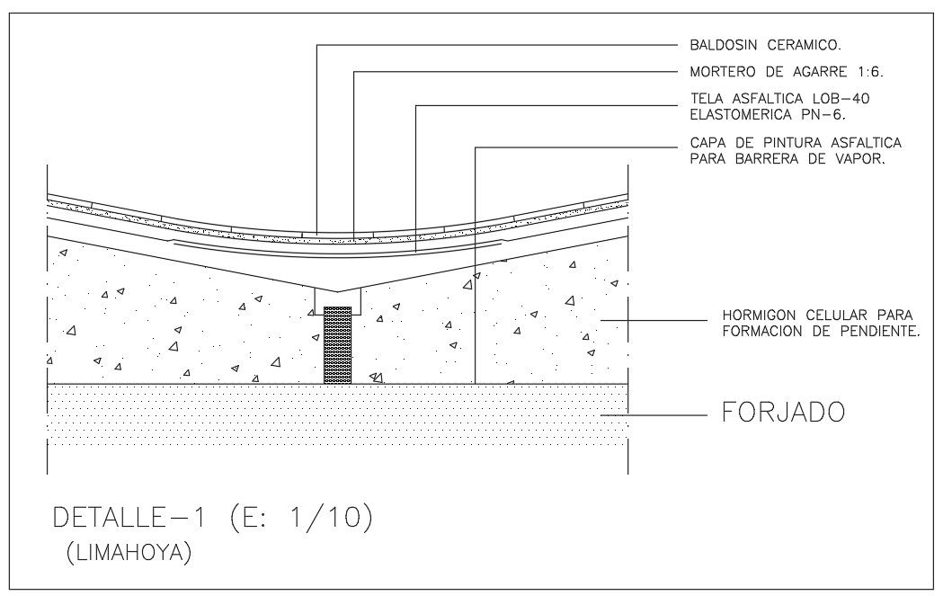 Detail of flat roof DWG file, ceramic, MORTAR GRIP 1: 6, Asphalt aint Layer Vapor for Barrier Detail of flat roof Design. .