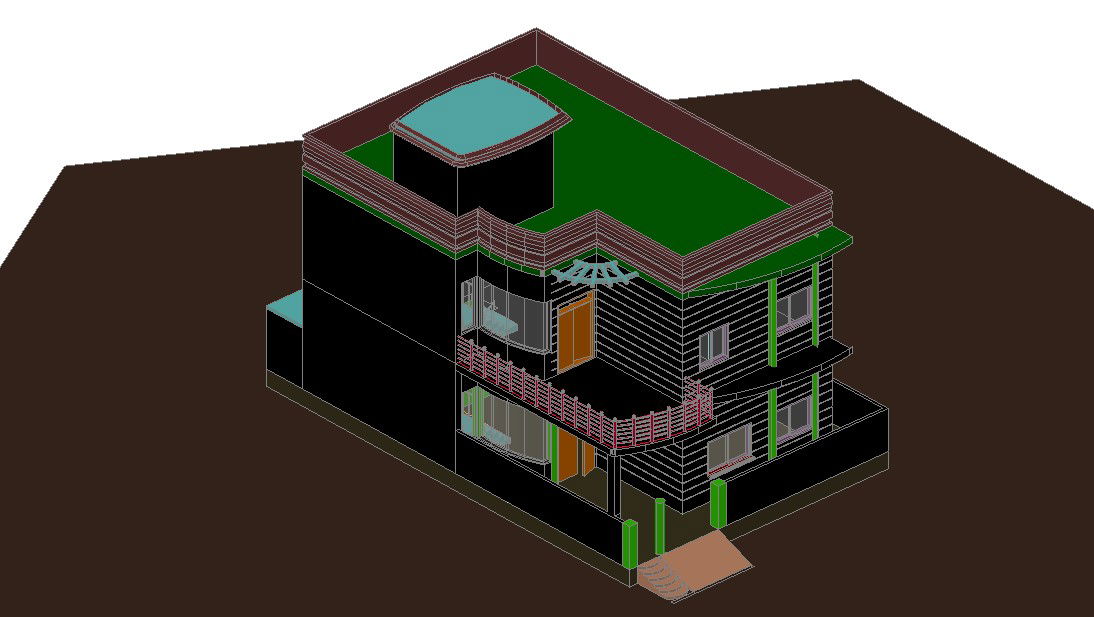 3d Model house isometric view for DWG File.this show two floor level provide in elevation plan, door and window details,. This file draw in autocad format.