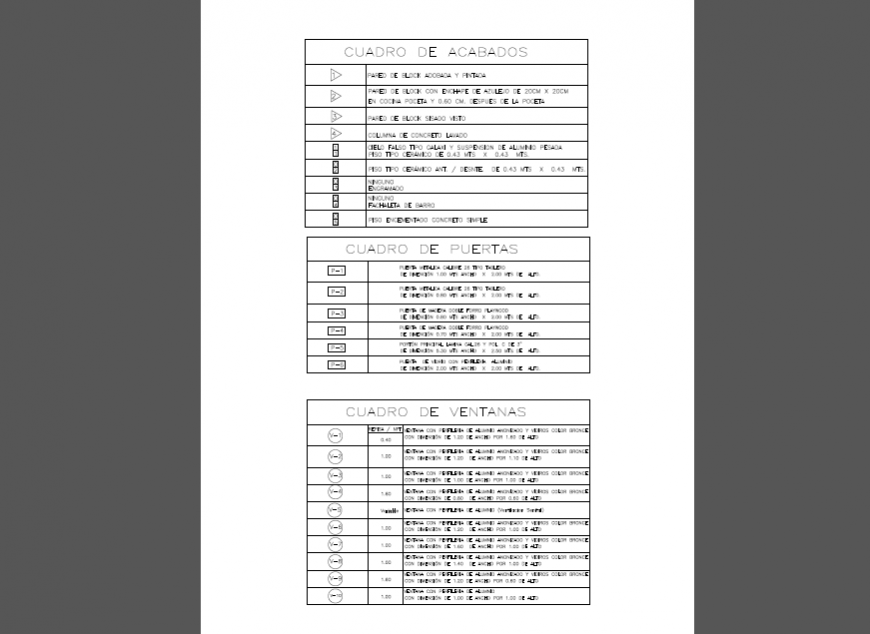 Here the General notification table of villa design with door - window box detail mentioned and finishing table mentioned in this file.