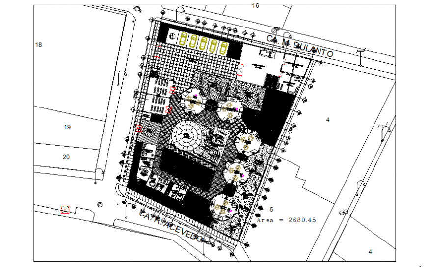 Site plan of Houses , detail of parking , detail of area , plantation detail , detil of street light , numbering of plots , site plan of area , detail of grid lines , details of garden and plantation ,