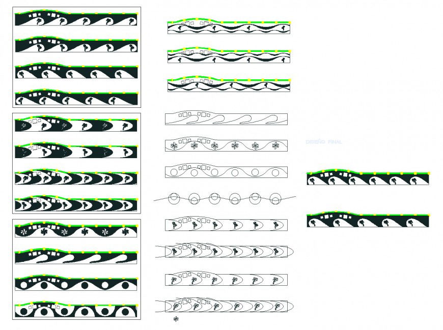 Foot bridge plan autocad file, coloring detail, landscaping detail in tree and plant detail, cut out detail, yellow colour detail, reinfrocement detail, nut bolt detail, concrete mortar detail, etc.