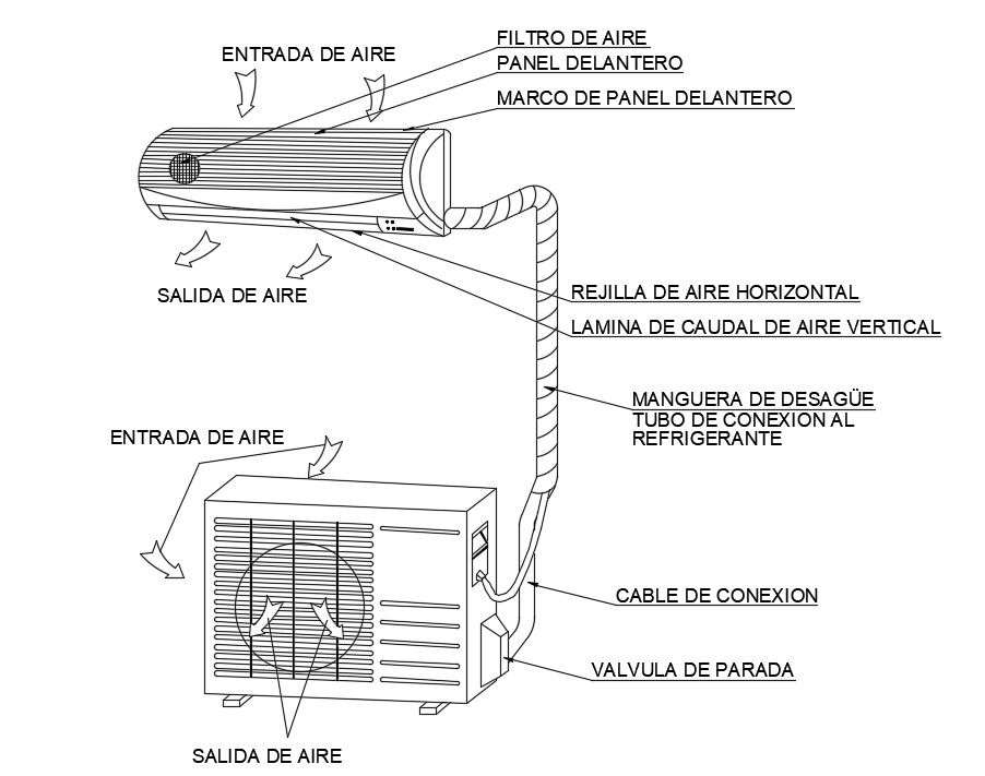 Split A.C Detail Download file. Air vent, Air Entrence, Air Filter, Front Panel, Front Panel Frame, Horizontal Grille air, Foil vertical air flow.