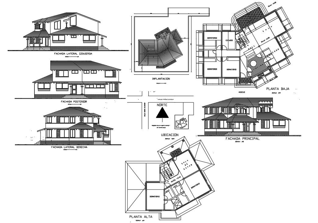 Simple House Design Download file. Elevation Front Left Side, Plantation, Back Design House, Front Right Side Elevation, Plant Design, Section detail.